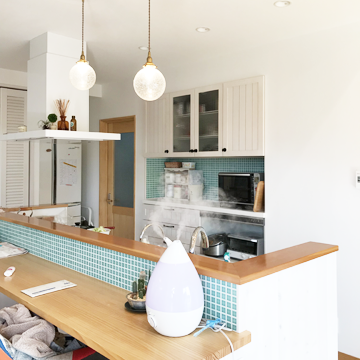 照明器具、クロスやキッチンの床材など随所にこだわりを詰め込んだアーリーアメリカンの平屋